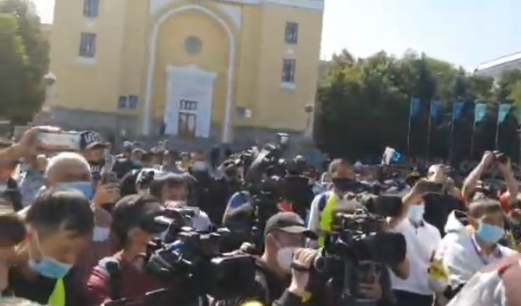 Митинг прошел на площади у сквера имени Чокана Валиханова.