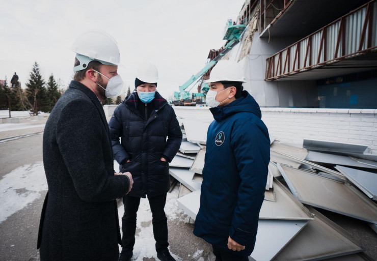 Кульгинов отметил, что во время объезда проверил ход демонтажа аварийных конструкций. После демонтажа власти намерены приступить к строительным работам.