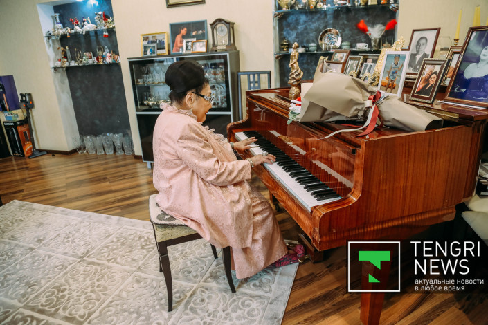 "Хочу рассказать о самом ценной вещи для меня - это мой рояль, который я приобрела в 1975 году. Съездила зимой на гастроли в Актау, заработала деньги и купила. Все, что я выношу на сцену, - через этот рояль. Репетирую на нем, тренируюсь.