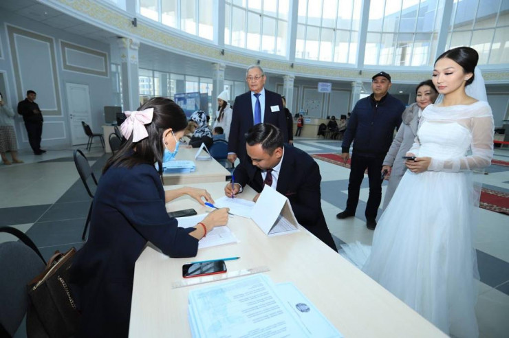 Саламат Жаманбай и Динара Крым празднуют день рождения семьи. Однако остаться равнодушными к выборам президента не смогли. После торжественной росписи пара отправилась на избирательный участок № 253, где прибывших на голосование жениха и невесту встретили аплодисментами.