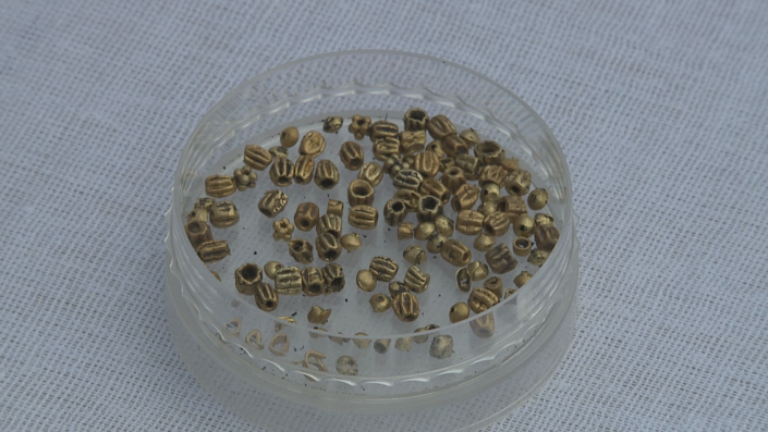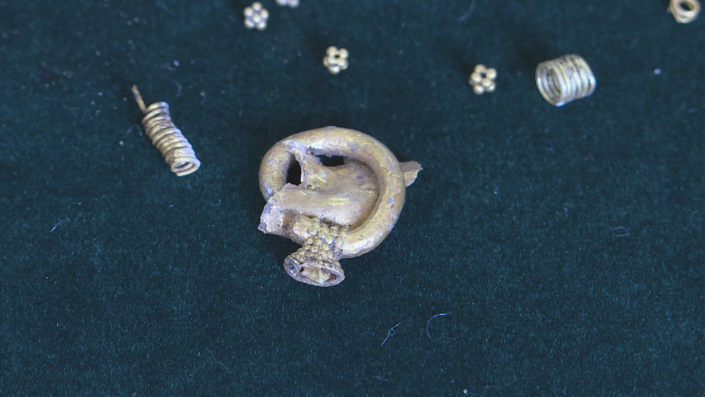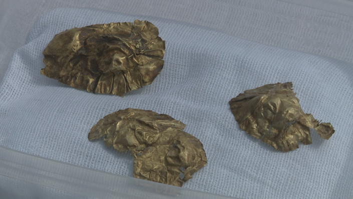 "Таких мельчайших украшений-нашивок более 10 000 штук. Они были на сапогах этого знатного человека. Это настолько тончайшее изделие, что даже современные ювелиры не в состоянии вот такие изделия создать", - отметил руководитель археологической группы Зейнолла Самашев.