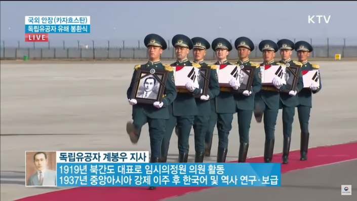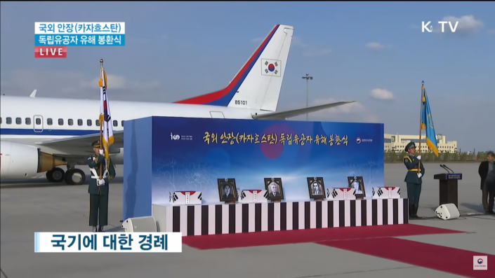 В Нур-Султане прошла торжественная церемония возвращения праха народных корейских героев на историческую родину. Вместе с прахом в Южную Корею на самолете Мун Чжэ Ина отправились родственники героев.