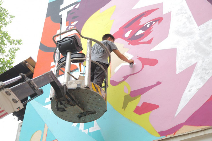 Парень впервые создает мурал в Алматы. До этого он рисовал комиксы, иллюстрировал книги и занимался стрит-артом. Говорит, что его попросили изобразить мировую звезду, но выбранное фото было особенным.
