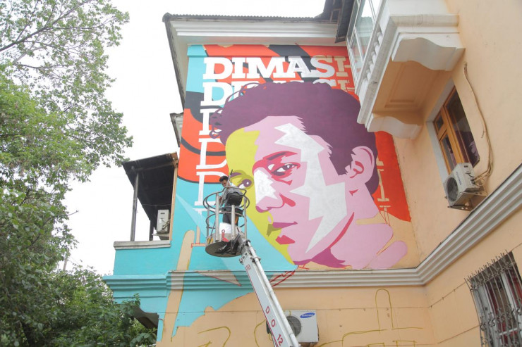 Мурал в честь Димаша Кудайбергена рисуют в Алматы