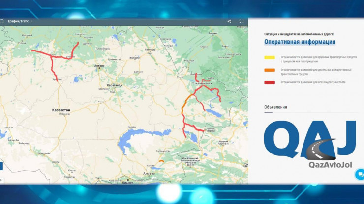 В Жетысуской области введено ограничение движения для всех видов автотранспорта на двух участках: