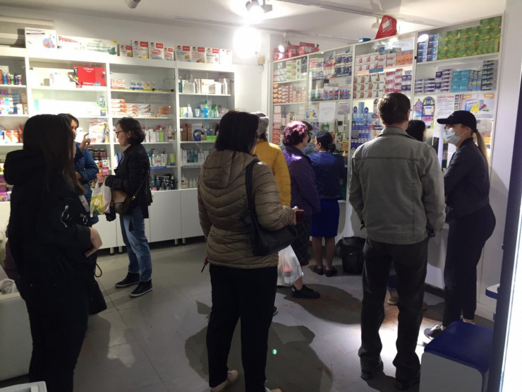 После информации о закрытии города на карантин количество посетителей аптек значительно увеличилось. Так, возле центральной аптеки на проспекте Назарбаева очередь наблюдается с утра.