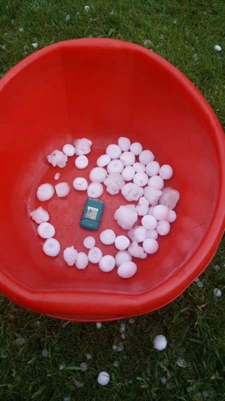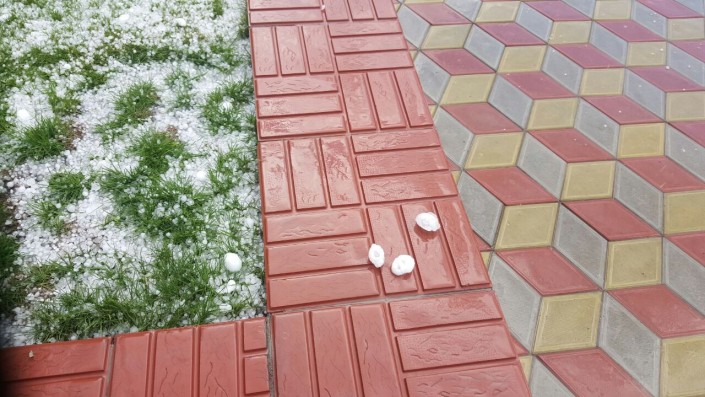 Как рассказали местные жители, град прошел в обеденное время. Отдельные дробинки имеют внушительный размер около 2-3 сантиметров в диаметре.