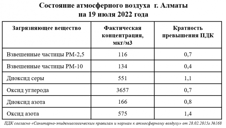 Накопления вредных веществ в воздухе Алматы ожидают 20 июля
