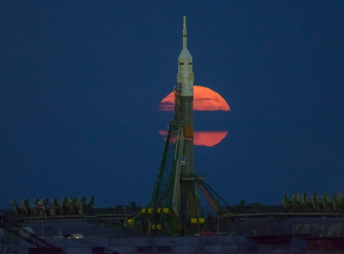 NASA опубликовало снимок захватывающего суперлуния с космодрома "Байконур"