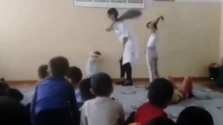 Один из последних случаев жестокого обращения с детьми в образовательных учреждениях произошел 5 марта в детском саду "Балдырган" в поселке Жана Каратон Атырауской области. На видео видно, как воспитательница подходит к девочке, хлопает ее ладонью по голове, тащит за волосы так, что та падает. Затем женщина собирает малышке волосы в хвостик.