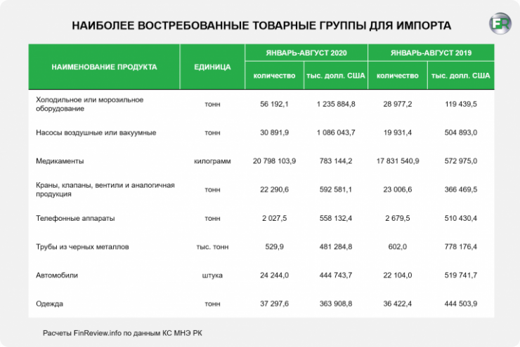 "Казахстан по-прежнему остается высоко зависимым от импорта по ряду товарных групп. По некоторым из них потребительский рынок более чем на 80 процентов покрывается за счет зарубежной продукции. Среди них сахар, куриное мясо, машины, оборудование, одежда и многое другое. Поэтому объем импорта по итогам восьми месяцев 2020 года сохранился на высоком уровне - 23,8 миллиарда долларов", - говорится в исследовании.