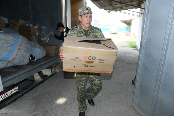 Продукты берут из хранилища, куда поступает гуманитарная помощь из регионов. Так, на сегодня руку помощи протянули Жамбылская область и город Арысь, жители которого год назад и сами нуждались в поддержке.