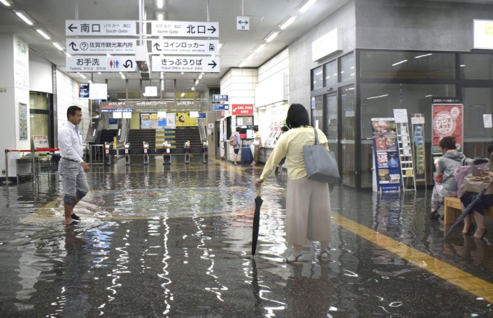 В этих районах выпало более 100 миллилитров осадков в час. В результате реки вышли из берегов и затопили несколько префектур. Затоплены дороги, железнодорожные станции, пострадали общественный транспорт, метро и объекты торговли.