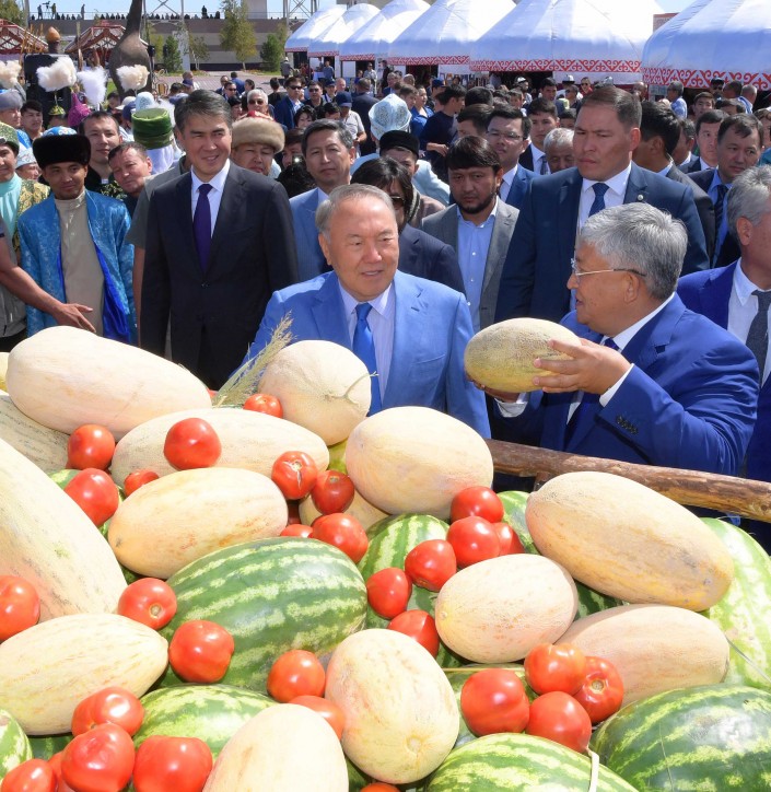 Главе государства были представлены экспозиции, которые знакомят гостей комплекса с национальной кухней, ремеслами, спортивными играми, традициями и обрядами казахского народа.