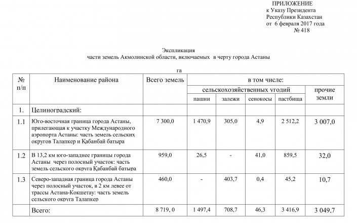 Президент Казахстана Нурсултан Назарбаев постановил изменить границы Астаны, передает Tengrinews.kz со ссылкой на пресс-службу Акорды.