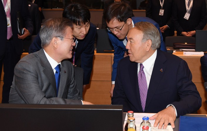 Президент Казахстана Нурсултан Назарбаев на полях 12-го саммита Форума "Азия - Европа" встретился с премьер-министром Японии Синдзо Абэ и президентом Республики Корея Мун Чжэ Ином, передает Tengrinews.kz со ссылкой на сайт Акорды.