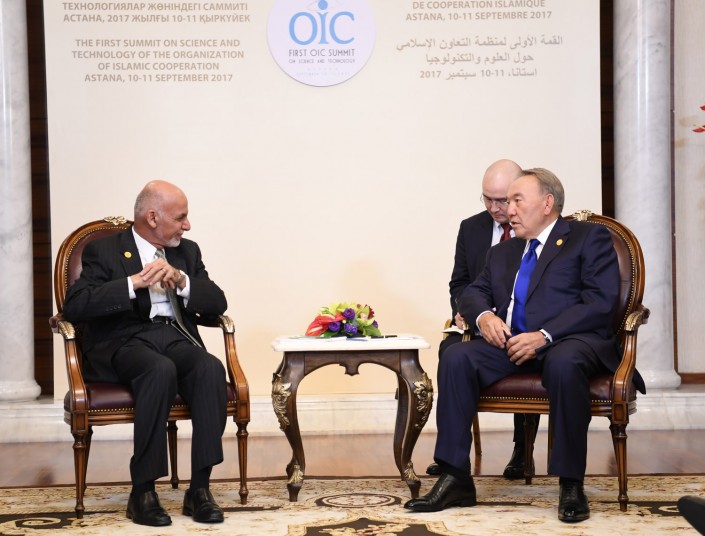 Президент Казахстана поблагодарил президента Афганистана Мохаммада Ашрафа Гани за участие в работе саммита Организации исламского сотрудничества по науке и технологиям.