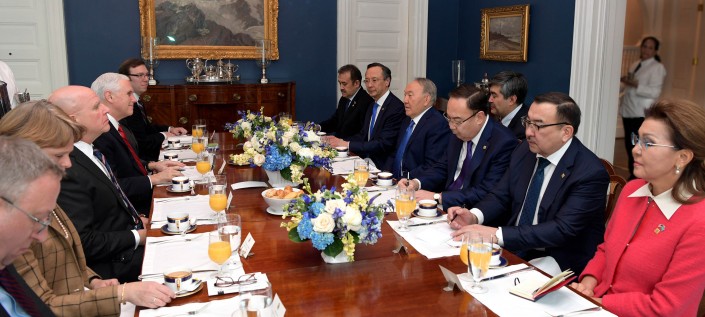 Президент Казахстана Нурсултан Назарбаев в Вашингтоне встретился с вице-президентом США Майклом Пенсом, передает корреспондент Tengrinews.kz со ссылкой на пресс-службу Акорды.
