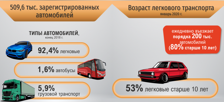 На начало 2020 года в Алматы зарегистрировано более 470 тысяч легковых автомобилей. Возраст почти половины из них - более 10 лет. Ежедневно в город въезжает еще порядка 200 тысяч автомобилей. Предположительно, 160 тысяч из них старше 10 лет.