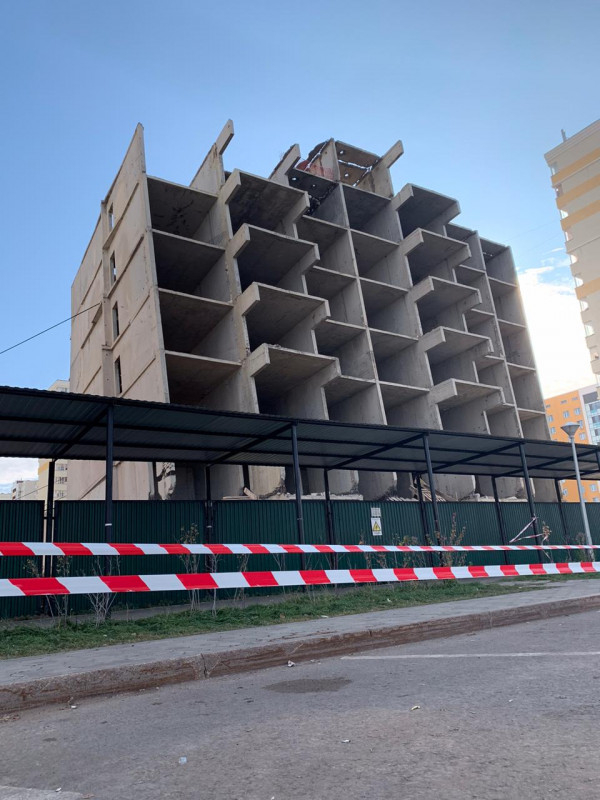 Недостроенный дом накренился в центре Нур-Султана Фото ©Tengrinews.kz