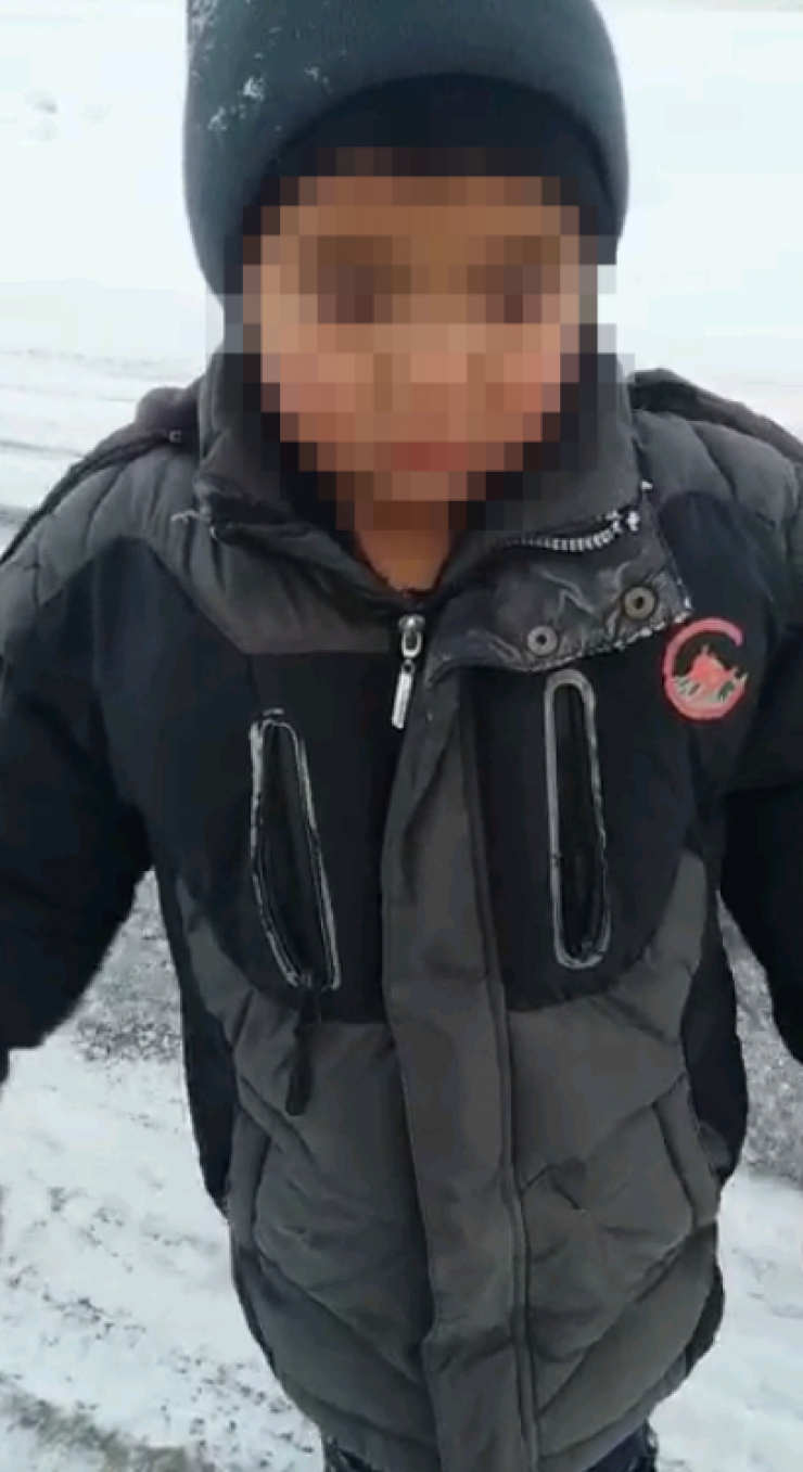 Неизвестного ребенка нашли одного на заснеженной трассе в Казахстане Кадры видео