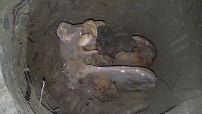"Похоже, что это захоронение. Там могут быть еще кости, в том числе и человека", - добавил археолог.