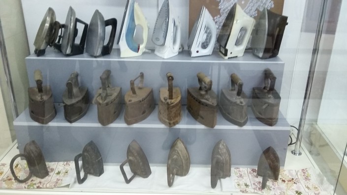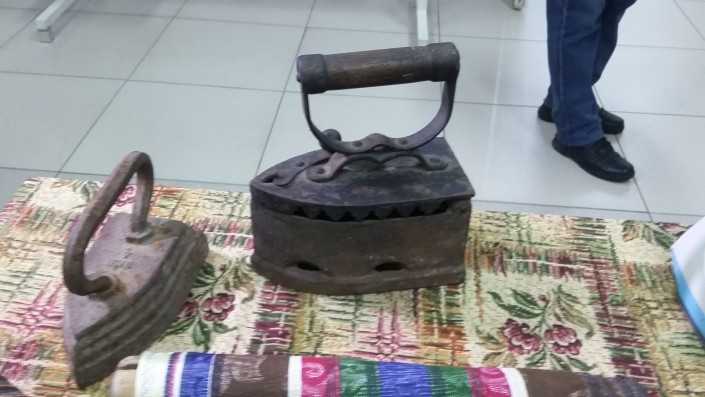 Достойное место в экспозиции занимает древний электрический утюг 1915 года выпуска американской компании "General Electric". Организаторы выставки наглядно отобразили и то, как утюг применялся в быту не по назначению. Его использовали как гнет при квашении капусты, в виде наковальни, для выпрямления гвоздей, а также самый распространенный способ - в качестве плиты для приготовления еды.