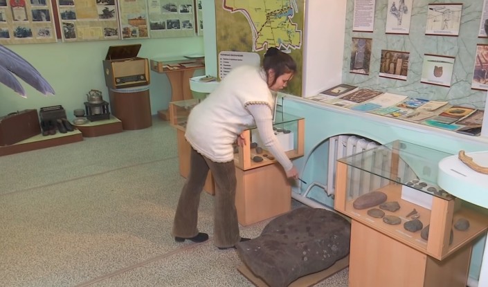 "Ему однозначно больше 1000 лет, более точную дату скажут ученые. И вот изваяние человека, четко видна рука, клинкообразное оружие в одной руке, чаша в другой, пояс виден - это воин, отворот на вороте, рельефное изображение", - заявила сотрудница музея Валерия Чурикова.