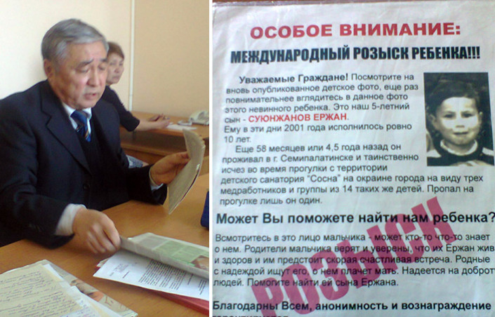 Летом 1996 года с территории детского санатория "Сосна" близ Семипалатинска исчез пятилетний Ержан Суюнжанов. К поискам ребенка были привлечены не только полиция, но и армия, а также сотни волонтеров. Сосновый бор вплоть до границ с соседней Павлодарской областью шаг за шагом прочесывали кинологи с собаками, обследовали с вертолета. Однако мальчик словно в воду канул.