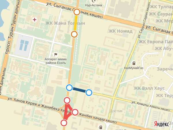 С 26 апреля по 10 мая временно будет запрещен проезд по улице Керей-Жанибек хандар на пересечении с проспектом Кабанбай батыра.