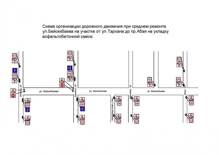 В частности, с 9 по 31 июля ожидается перекрытие движения на улице Б. Бейсекбаева, участок от улицы Тархана до проспекта Абая.