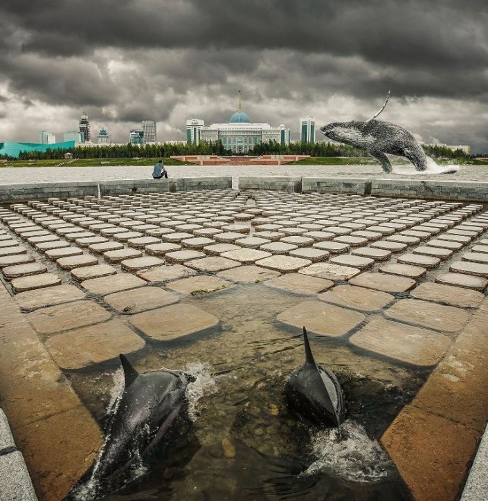 А вот кит и дельфины перед Акордой. Больше работ турецкого фотохудожника, который работает учителем в Казахстане, можно посмотреть здесь.