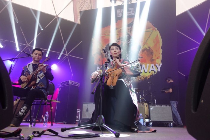 Удивительные The Magic of Nomads на сцене фестиваля экспериментировали в самых разных музыкальных жанрах, исполнив джазовые, рок, фолк и соул композиции на казахских инструментах. В их мелодиях - крик степного беркута, шепот ветра и топот коней гармонично сочетаются с джазовой атмосферой.