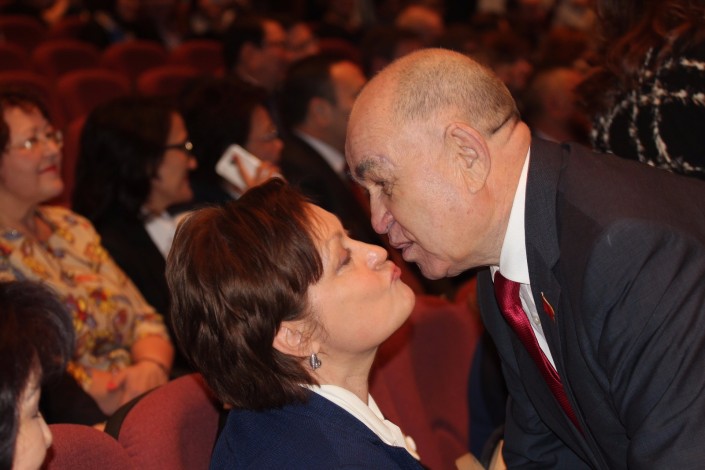 С приходом каждого депутата в зале становилось еще больше восторженных голосов, дружеских объятий и поцелуев.