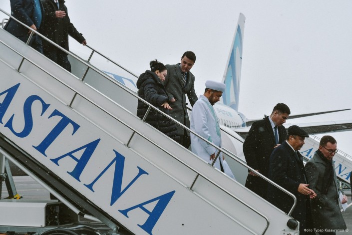 В столице самолет встретили вице-министр по инвестициям и развитию Тимур Токтабаев, руководитель Комитета гражданской авиации МИР РК Талгат Ластаев, представитель Международной ассоциации авиаперевозчиков IATA Джордан Карамалаков, вице-президент корпорации Boeing по продажам в странах Азии и Африки Марти Бентротт и президент авиакомпании SCAT Владимир Денисов.
