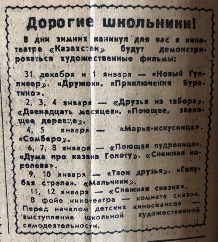 В Центральном государственном архиве кинофотодокументов и звукозаписи Республики Казахстан сохранился сюжет о праздновании Нового года в Алма-Ате в 1952 году.