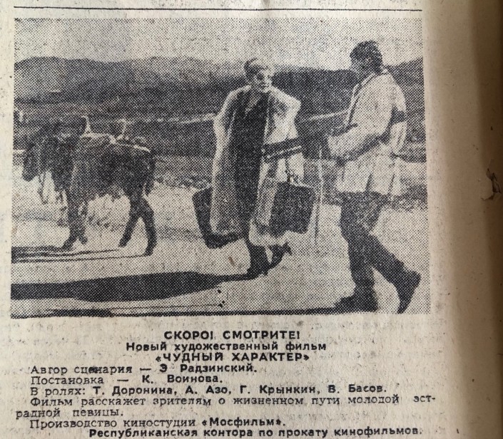 На последней странице издания - афиша, на которой в канун нового, 1971 года анонсировался прокат кинокартины "Чудный характер" Эдварда Радзинского.