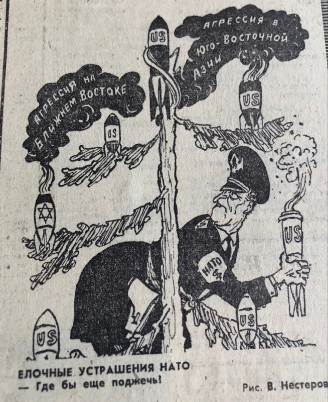 На страницах появились новогодние карикатуры на "алчных капиталистов". "Холодная война" и гонка вооружений в конце 70-х выйдет на новый виток противостояния.