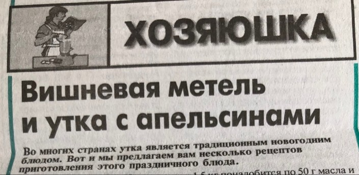 На страницах печатного издания появилась рубрика "Хозяюшка", где публиковались рецепты приготовления различных блюд. В то время некоторые хозяйки собирали свою собственную "поваренную" книгу. Чаще всего это была толстая тетрадь с вырезками из газет и записанными рецептами.