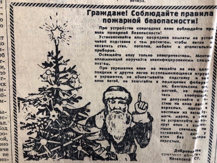 В газете напоминали о пожарной безопасности и правилах установки новогодней елки.