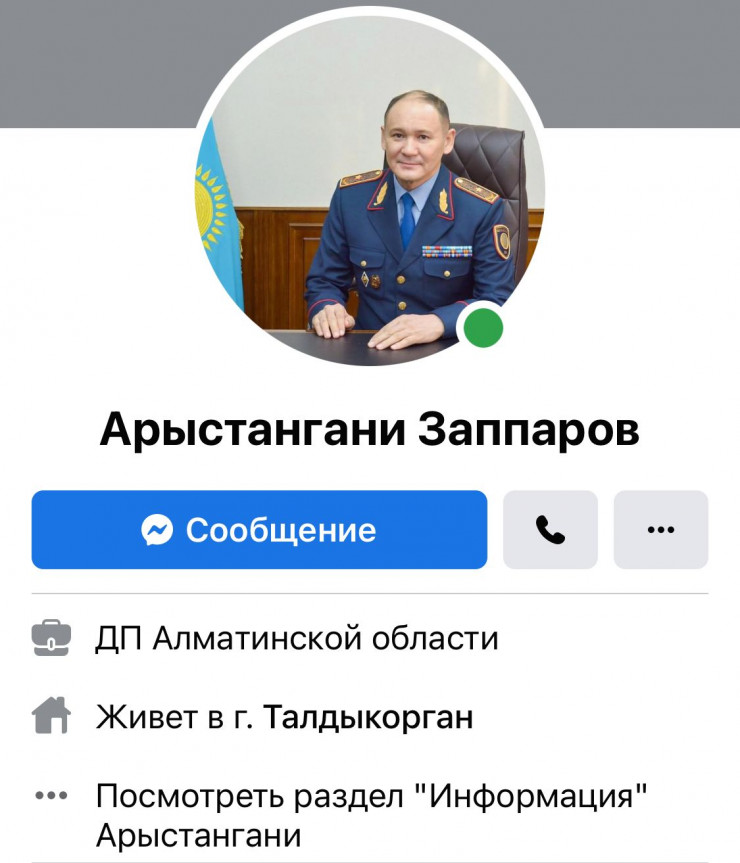 Новый глава полиции Алматинской области генерал-майор Арыстангани Заппаров открыл аккаунт в Facebook, передает Tengrinews.kz со ссылкой на пресс-службу Департамента полиции региона.