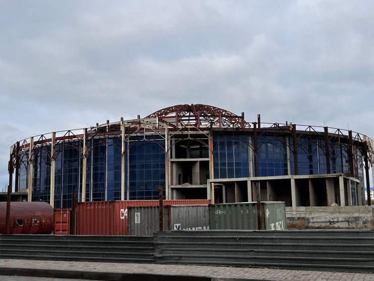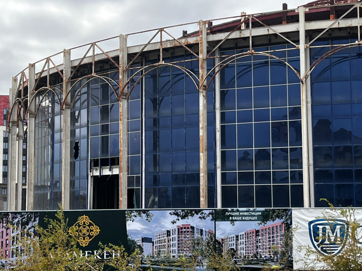 Недостроенный концертный зал находится в полуразрушенном состоянии: окна разбиты, металлические конструкции заржавели. Дополняют ужасающую картину груды мусора вокруг. В акимате говорят, что на возобновление строительства потребуется еще 5 миллиардов тенге.