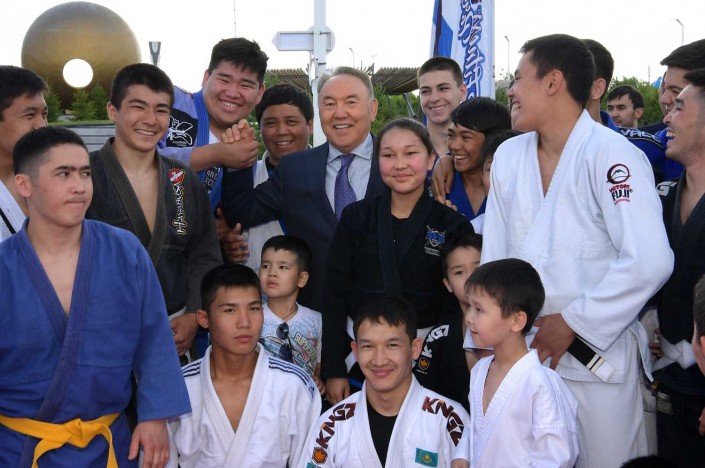 Кроме того, глава государства посетил спортивную площадку парка, где проходили соревнования борцов-любителей среди юношей.