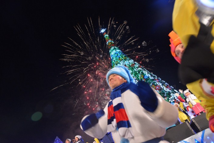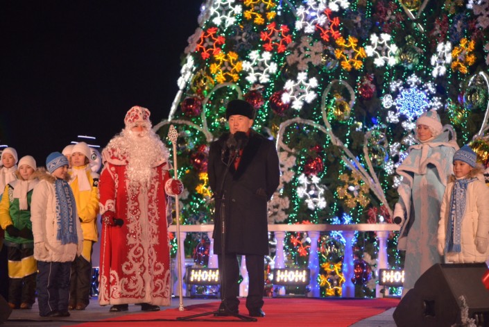 В праздничном шоу участвовало более двух тысяч школьников и творческих коллективов Астаны. Открытие городка и зажжение новогодней елки стало стартом праздничным мероприятиям по всей стране. Вслед за главной елкой зажгутся огни на еще 40 елках в разных концах столицы, а также во всех городах Казахстана.