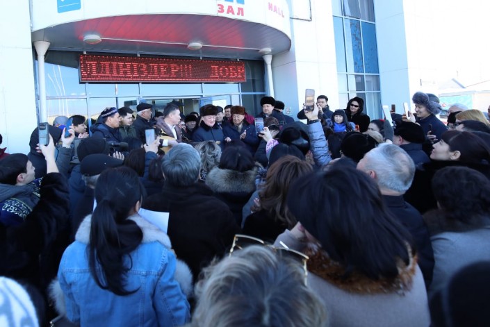 Жители Актобе приехали в аэропорт, чтобы попрощаться с бывшим главой региона. Они обнимались с экс-акимом, фотографировались и дарили цветы. Кто-то просил автограф, а аксакалы надели на его плечи чапан.