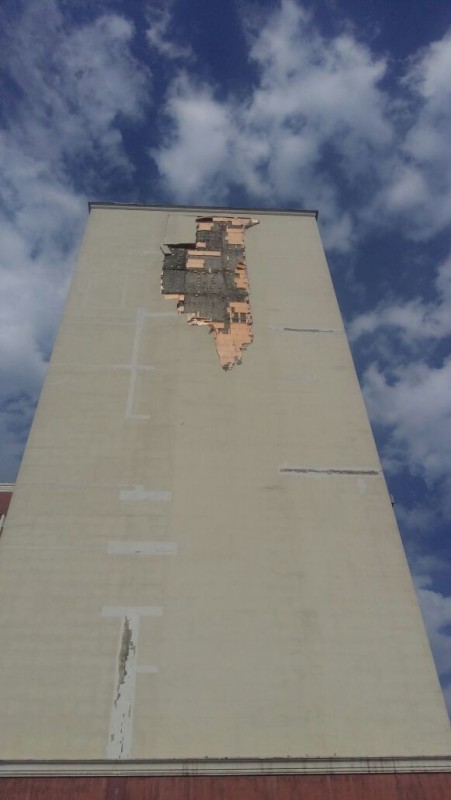 Жители микрорайона Калкаман сняли на видео момент обрушения облицовки дома. Все произошло 10 августа около 15.00. Во время сильного ветра с жилого дома начали падать плитки, а затем рухнул целый кусок облицовочного материала.