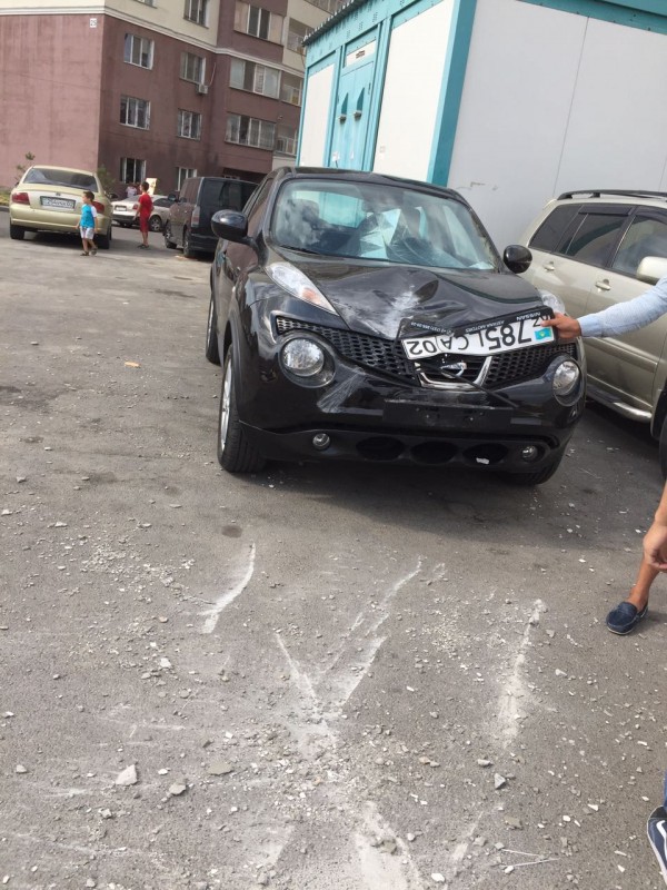"Мы около часа искали хозяина машины, потом оказалось, что это машина женщины. Сейчас она не знает, куда обращаться. Страховая компания ей отказала в выплате компенсации, так как они сказали, что это форс-мажор. Мы полицию вызвали, пока еще не приехала", - добавила жительница микрорайона Калкаман.