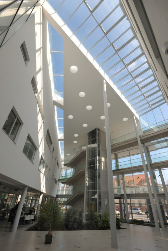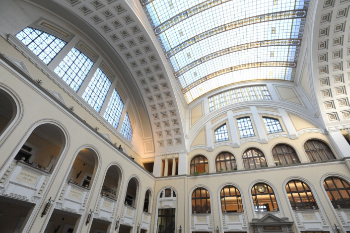 Здание главного корпуса построено в стиле эклектики и необарокко: потолки сделаны из стекла, а коридоры украшены многочисленными арками.