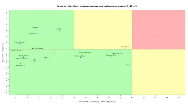 Согласно матрице оценки эпидемиологической ситуации в регионах Казахстана на 31 декабря, в "желтой" зоне остается Нур-Султан.