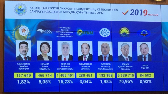 Касым-Жомарт Токаев - 6 539 715 голосов - 70,96 процента,